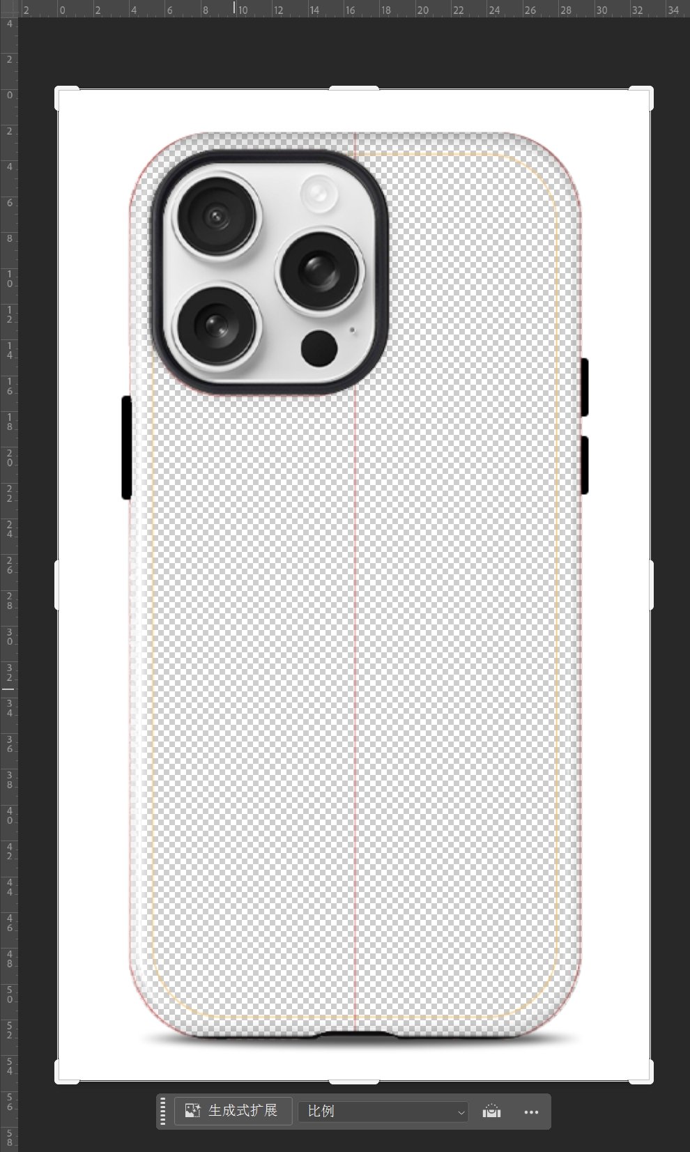 手机壳的视觉实际大小,请确保图案的主体部分于红线区域内。(中心竖线为产品中线可用来协助放置需要居中的图案元素)。
